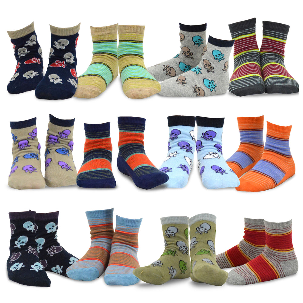 TeeHee Kids Boys Crew Socks – 12 Pairs Gift Box | Cotton Fun Socks for Toddlers & Boys | (Sizes 12-24M, 3-5Y, 6-8Y, 9-10Y)